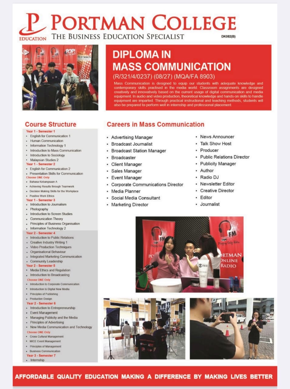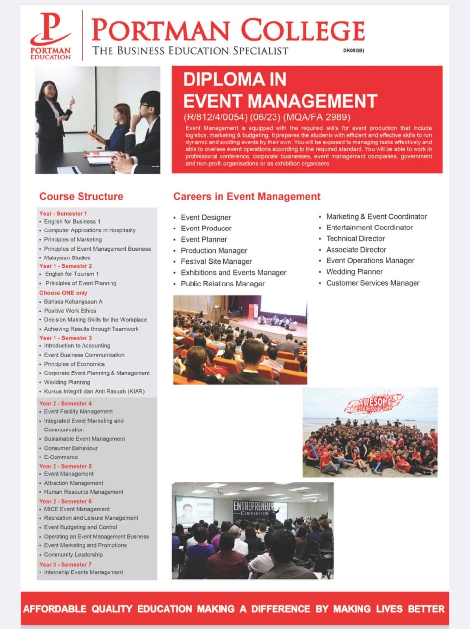 Diploma options (MQA Accredited, DIKTI index)from PORTMAN College Malaysia.):